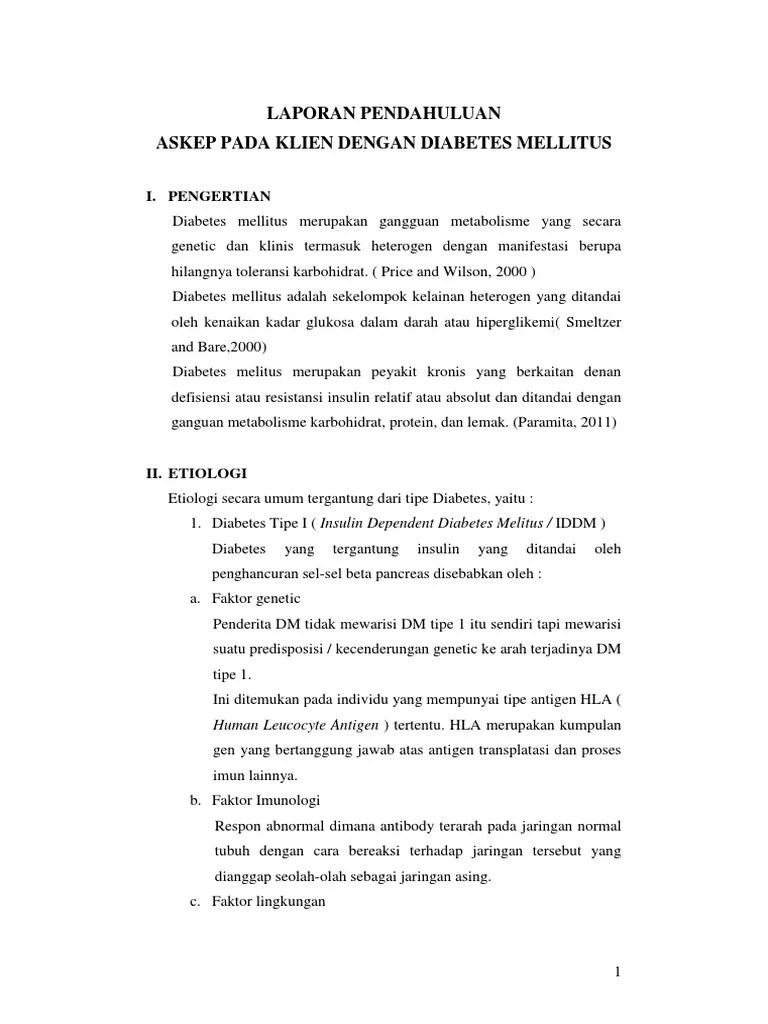 Berjudul "asuhan keperawatan pada pasien dengan diabetes mellitus tipe ii di. Berikut ini laporan pendauluan askep diabetes melitus (dm) pdf doc definisi diabetes berasal dari bahasa yunani yang berarti "mengalirkan . Diabetes melitus tipe 2 sekitar 95% penyandang diabetes merupakan penyandang diabetes melitus tipe 2. Laporan pendahuluan dan asuhan keperawatan pada ny. Tingginya kadar glukosa darah disebabkan karena .